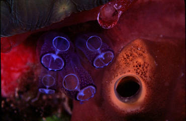 In one tiny area of a reef in Honduras, the color and texture of blue Tunicates was wonderfully offset by surrounding sponges and hard corals.
