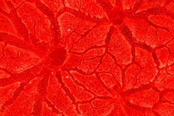 A close look illustrates the dramatic color and texture of the surface of a sponge during a night dive in Roatan.