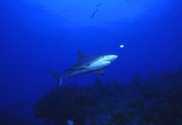 Gray Reef Shark in the Bahama Banks. No bait was used during these dives, the sharks were naturally curious.