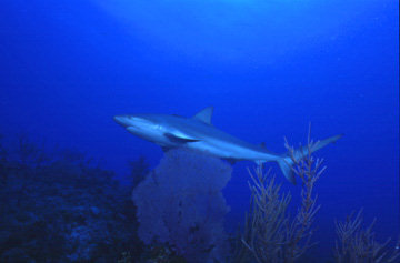 Gray Reef Shark in the Bahama Banks. No bait was used during these dives, the sharks were naturally curious.