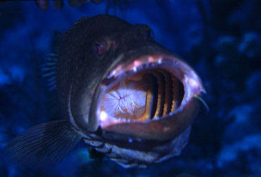A stop at a cleaning station where small cleaner fish eat the parasites of larger fish also seems to be an opportunity to inspect tonsils.